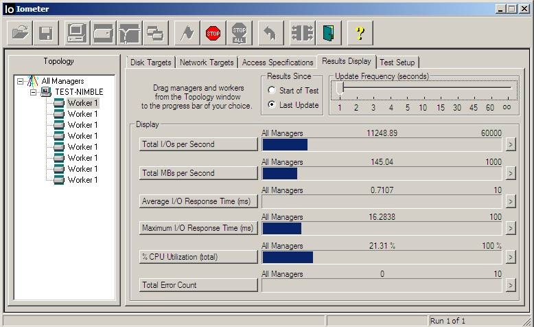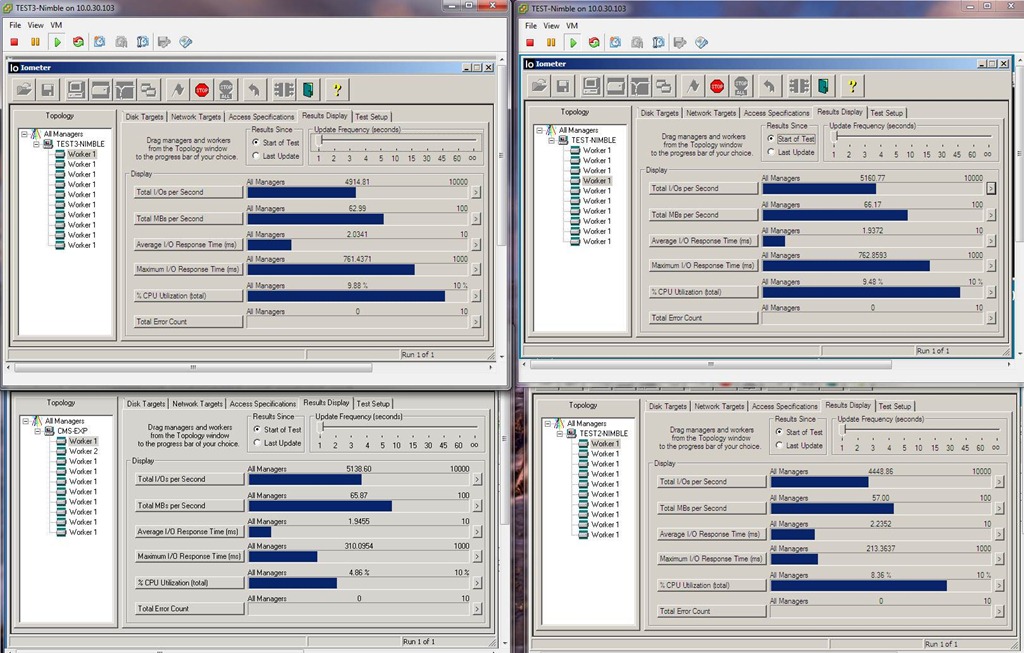 The below Iometer test were running at the same time across two different Host. (Only had 1Gbps iSCSI connected at the time)